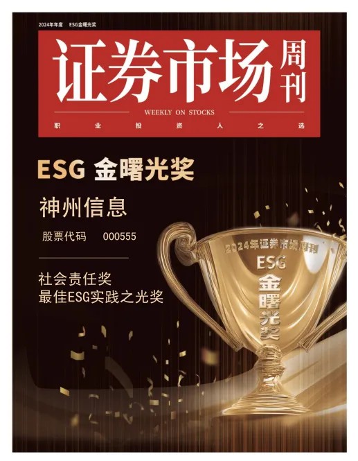 近日,2024《证券市场周刊》ESG“金曙光奖”榜单揭晓,神州信息凭借多年来在金融科技与社会责任方面的持续创新,荣获“金曙光社会责任奖”,并荣登“最佳ESG实践之光”榜单。